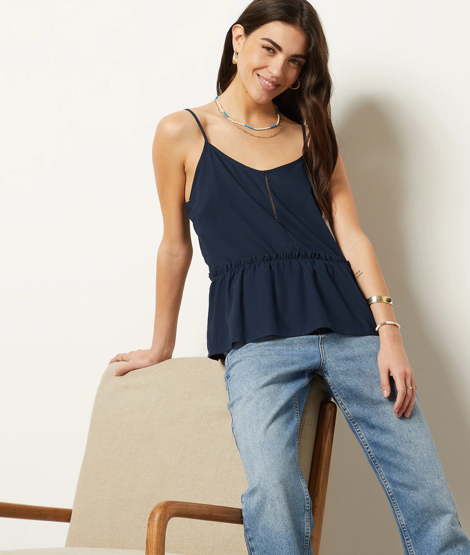 Caraco Aus Leinenmischgewebe MARINEBLAU