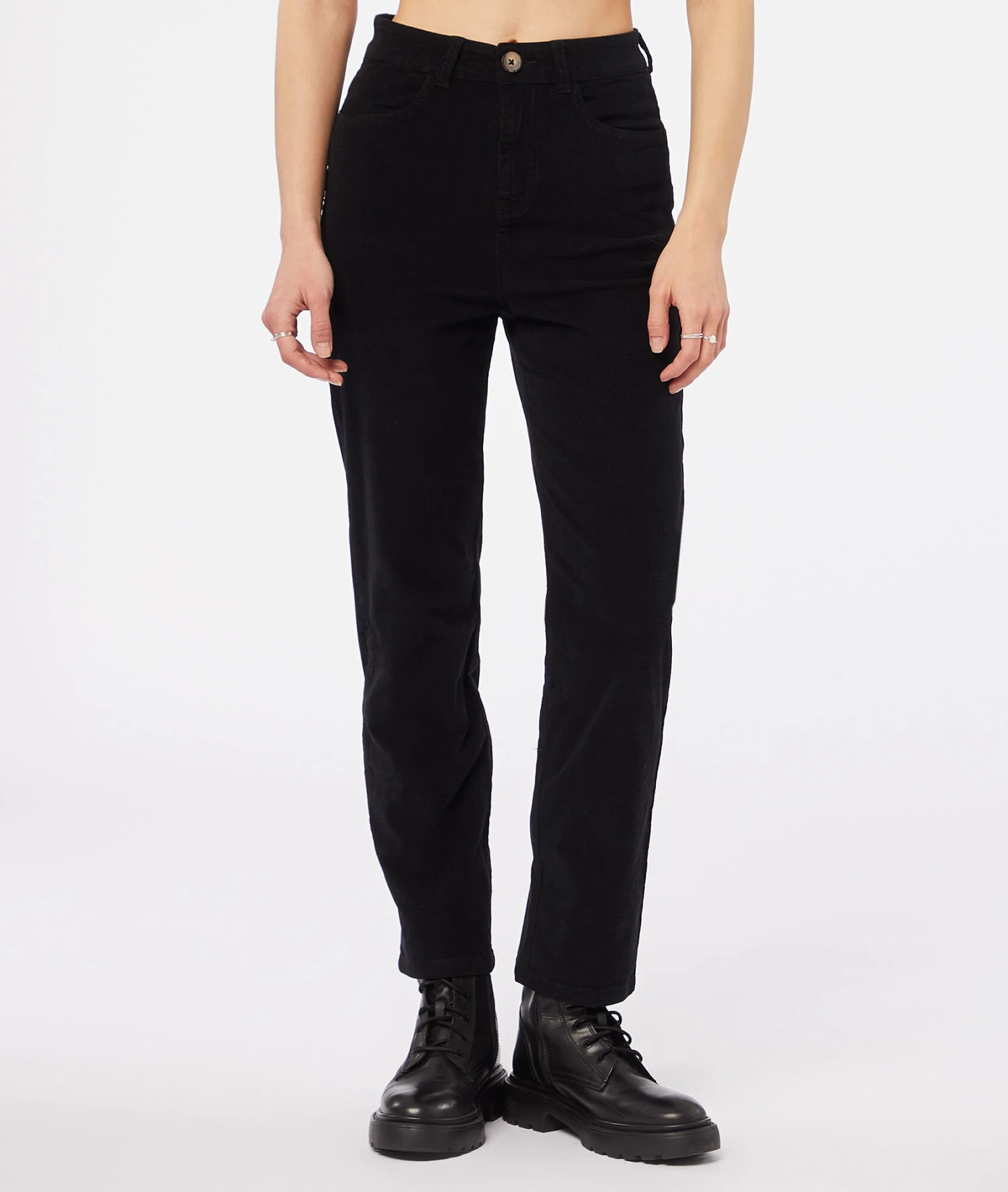 Gerade Geschnittene Hose, Gerippt SCHWARZ