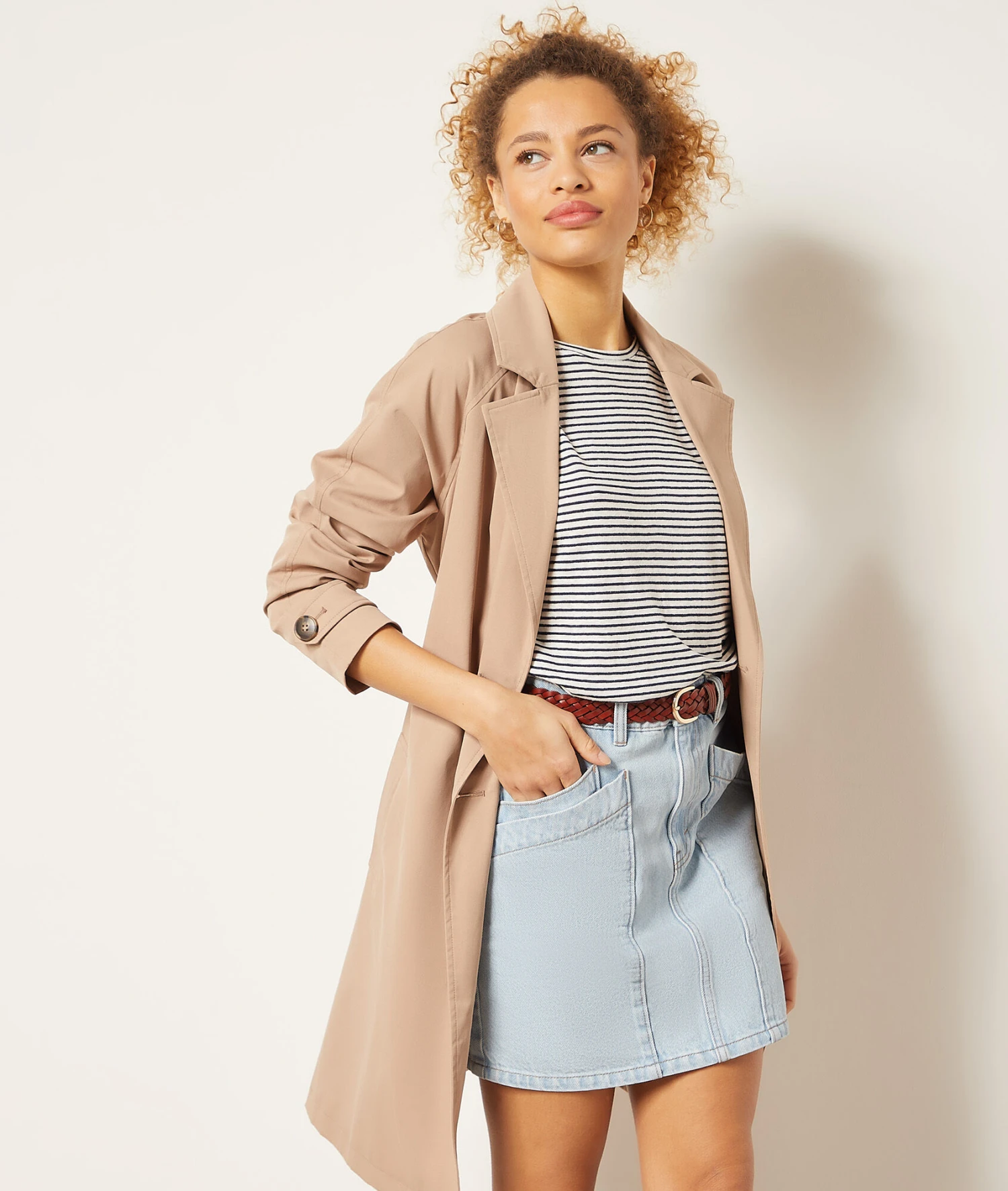 Gestreiftes T-Shirt Aus Leinenmischgewebe ECRU