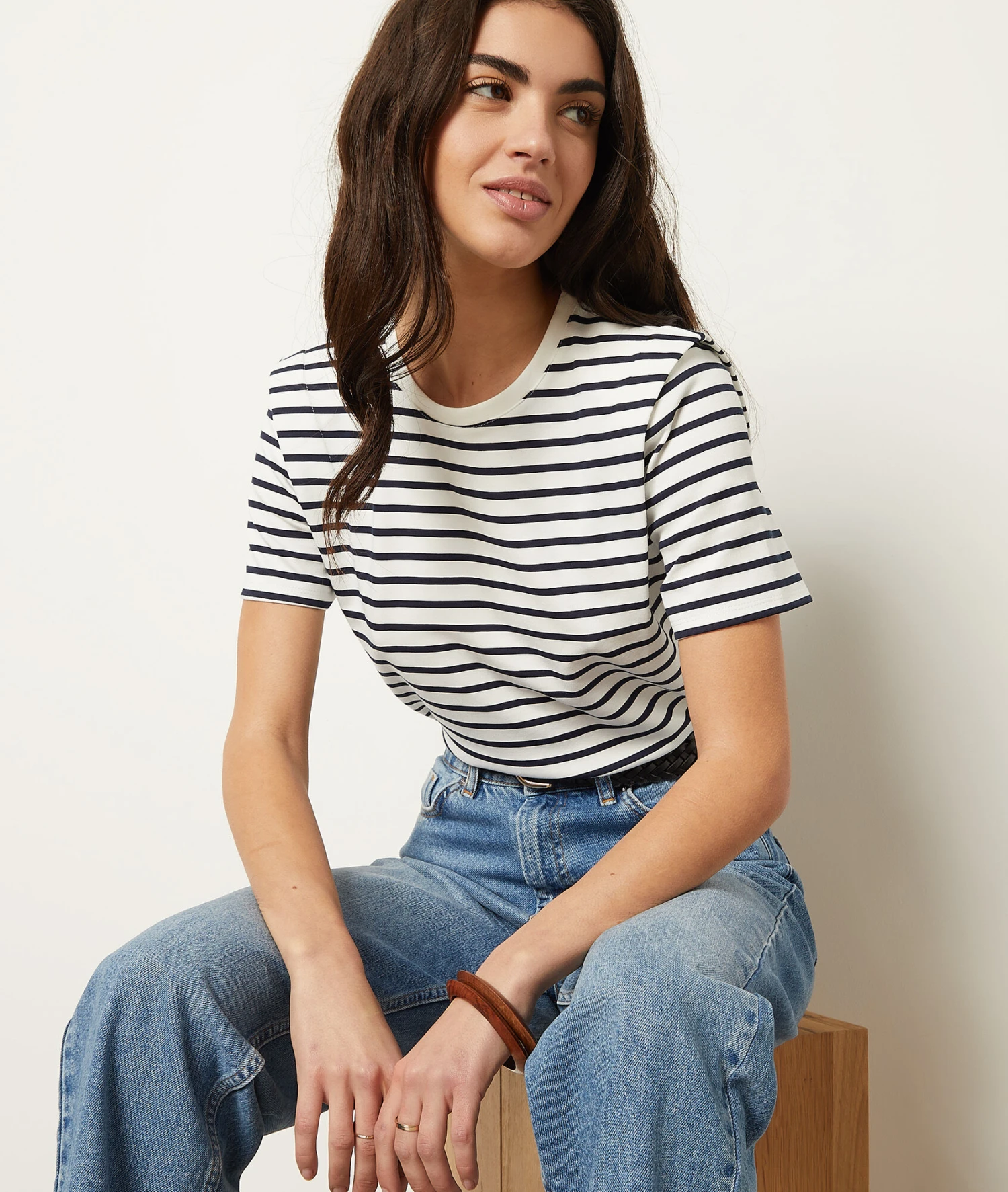 Gestreiftes T-Shirt Mit Kurzen Ärmeln WEISS