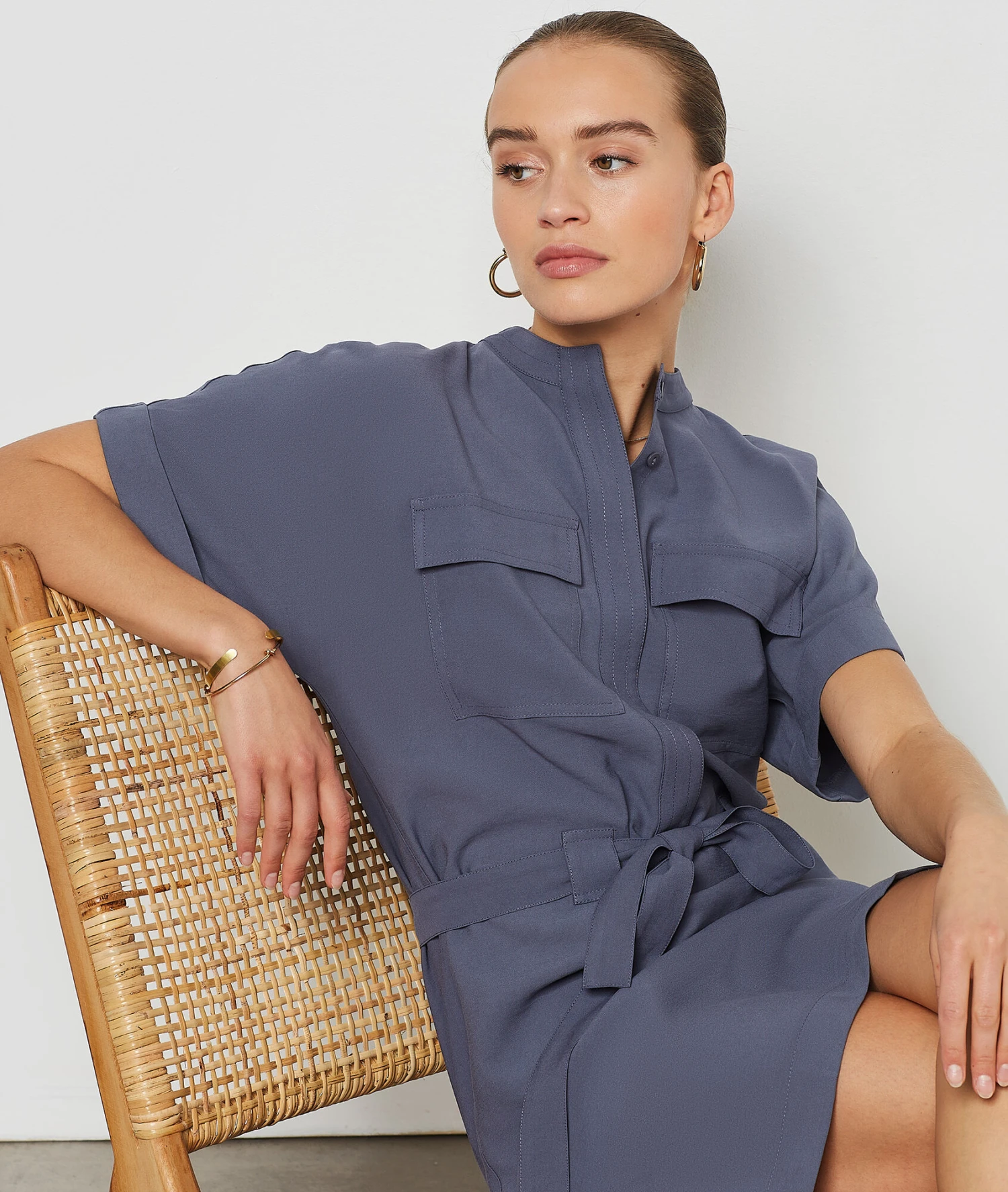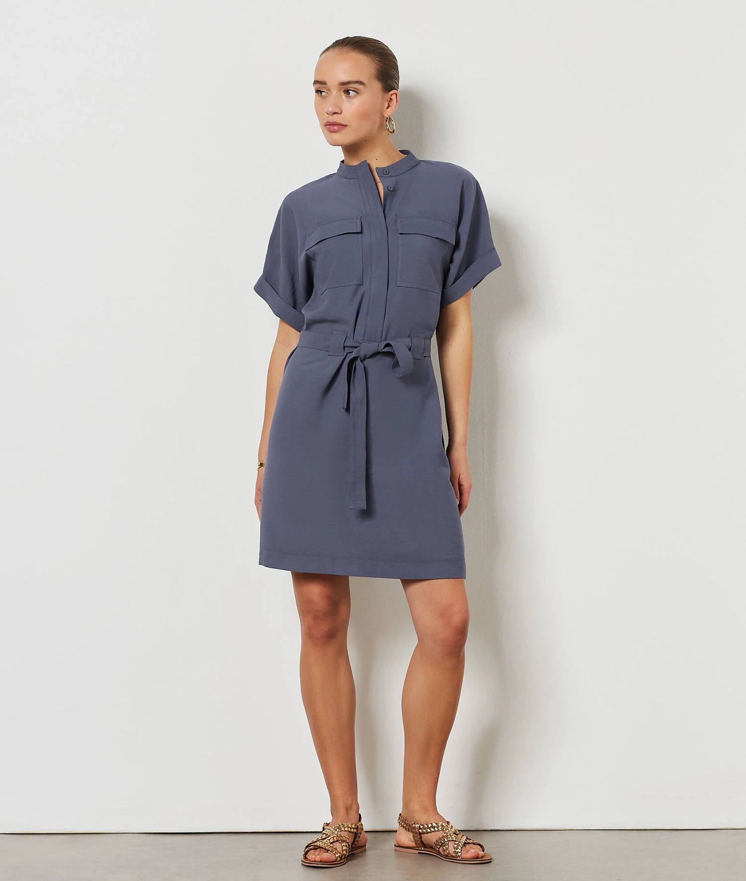 Kleid Mit Bindegürtel BLAUGRAU