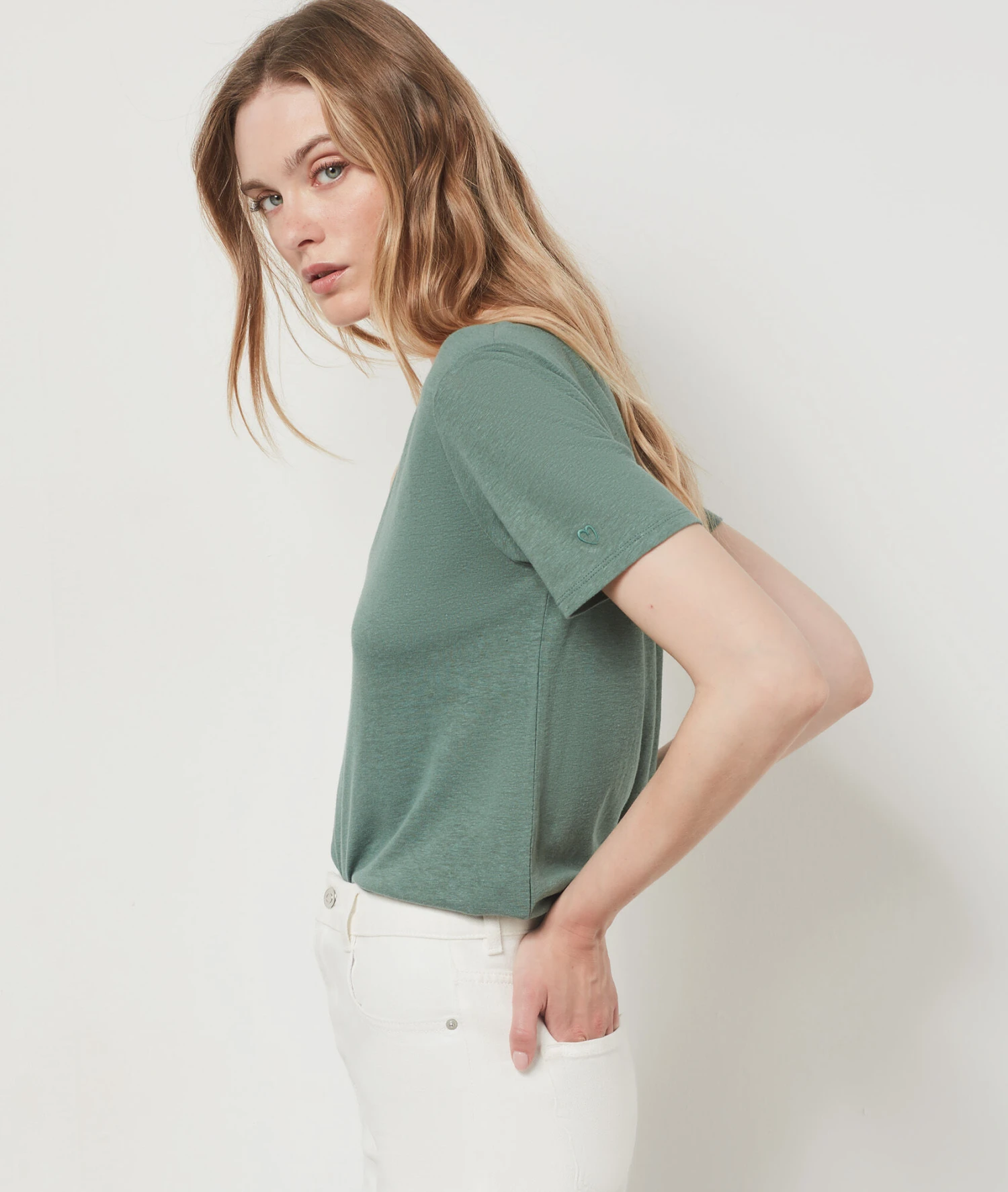 T-shirt Manches Courtes En Lin Mélangé KAKI