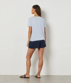 T-Shirt Mit V-Ausschnitt Und Kurzen Ärmeln, 100 % Baumwolle ROSA
