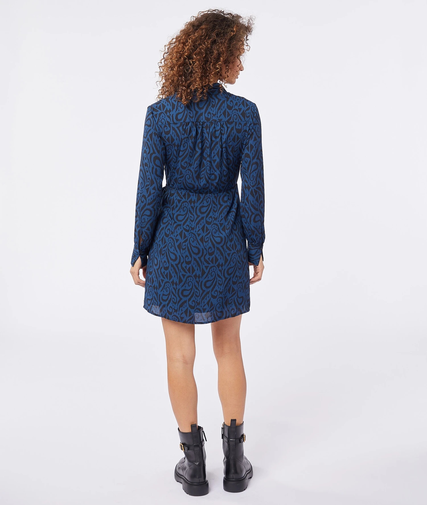 Das perfekte kleine Kleid mit Print für jede Gelegenheit! Mit einem geknöpften Hemdkragen, langen Ärmeln und einem seitlich dezent gebundenen Rock.